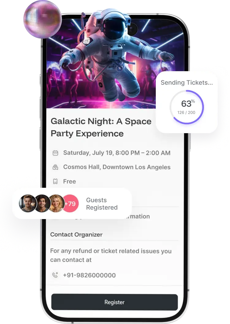 Customize tickets with your branding, logos, and event details using ready-made templates or upload your own designs. Send tickets automatically via SMS, WhatsApp, or email.
